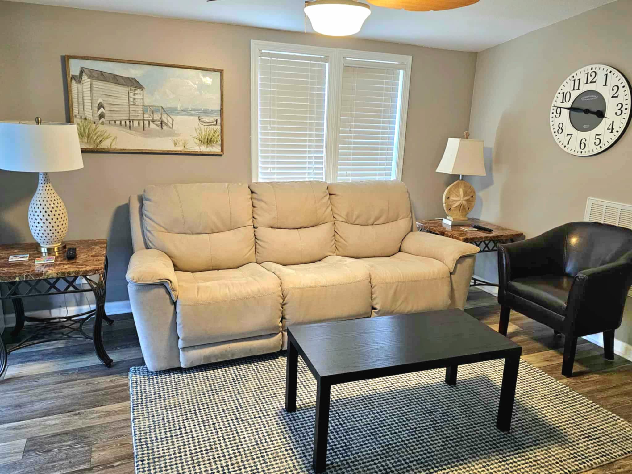 3 Bedrooms • 2 Bathrooms 2 Baths • Sleeps 3-6Welcome to Lou's Lounge – a cozy, comfortable 3-bedroom, 2-bath beach home located in the highly sought-after 5000 section of Ocean Lakes Family Campground! Perfect for families, this charming home includes a complimentary golf cart, cozy indoor space, and a gated front porch with a TV for outdoor lounging after long beach days.